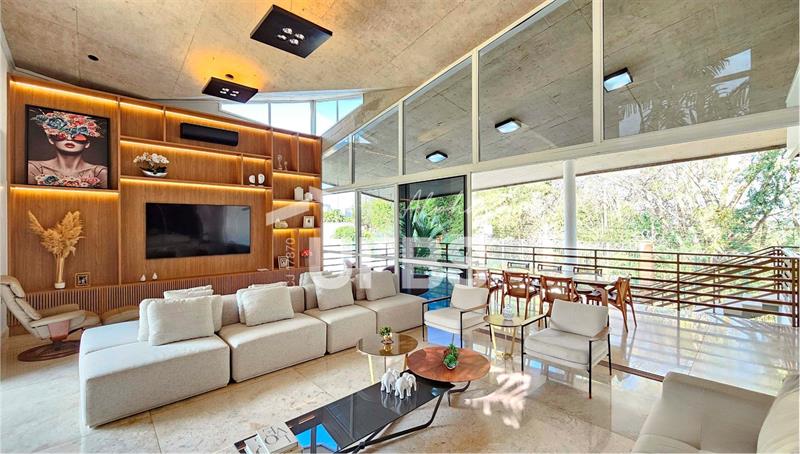 Com projeto arrojado e fundo para mata, o imóvel conta com 4 suítes, 629 m² de construção e um terreno amplo de 1.190 m².