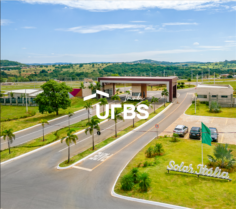 Lote no condomínio Solar Itália com 300 m², localizado em Senador Canedo a apenas 15 minutos de distância do Shopping Flamboyant, destacando a conveniência da localização desta propriedade