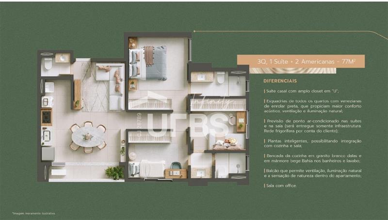 Apartamento de 77 m², com 3 quartos, sendo 1 suíte e 2 suítes americanas