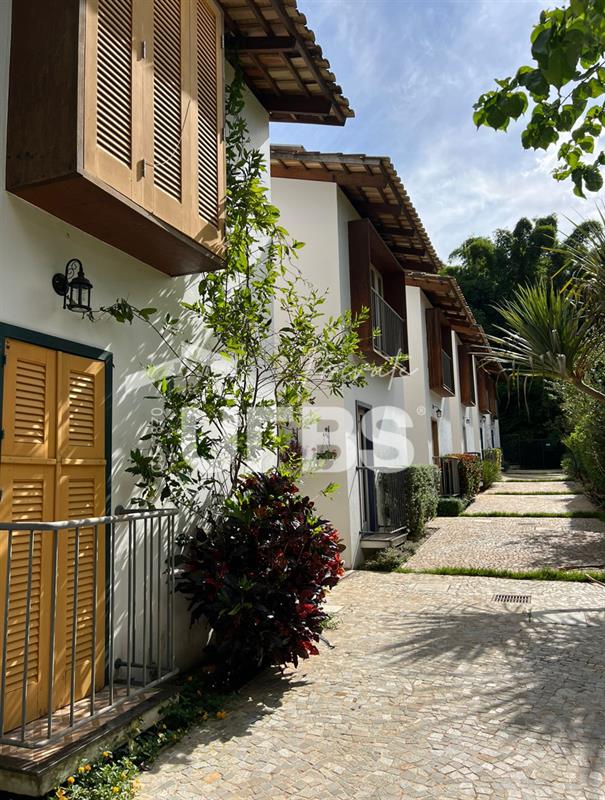 É um sobrado, em condomínio fechado, com duas suítes na parte superior, com vista para a mata