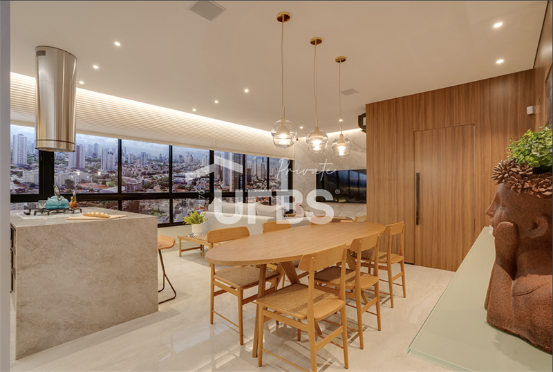 Mega Esquadrias que proporcionam melhor ventilação e iluminação natural, lavabo com bancada em pedra e cuba esculpida, cozinha entregue com infraestrutura para implantação de Ilha Gourmet, pontos de ar-condicionado na sala e nos quartos, laje técnica com espaço para condensadoras de ar-condicionado e aquecedor de passagem para sistema de aquecimento de água a gás, infraestrutura para automação de áudio e vídeo, iluminação e climatização