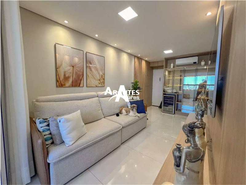 Com 88,56 m², este apartamento conta com três quartos, sendo uma suíte, cozinha americana integrada e uma ampla varanda gourmet fechada em cortina de vidro.