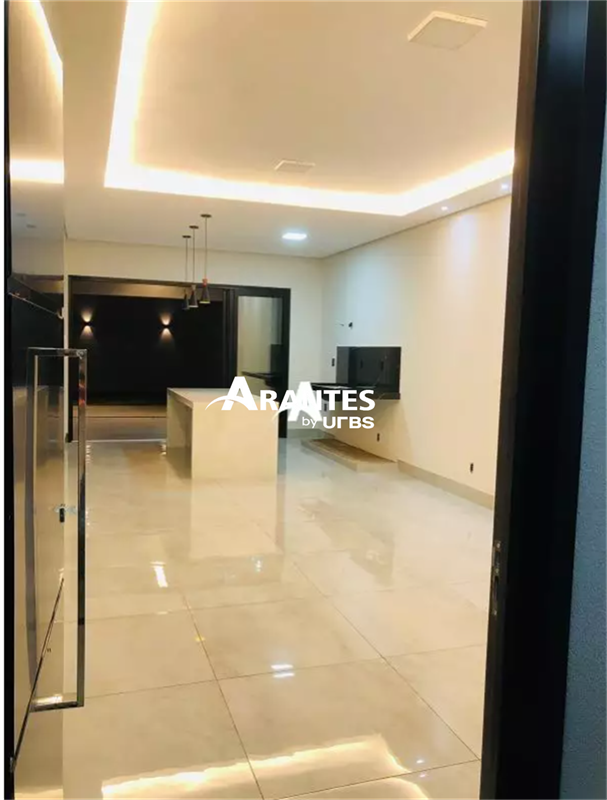 A casa possui acabamentos de alta qualidade, como gesso acartonado, iluminação LED, esquadria em alumínio linha Suprema, rodapé embutido, e bancadas e ilha no porcelanato esculpido