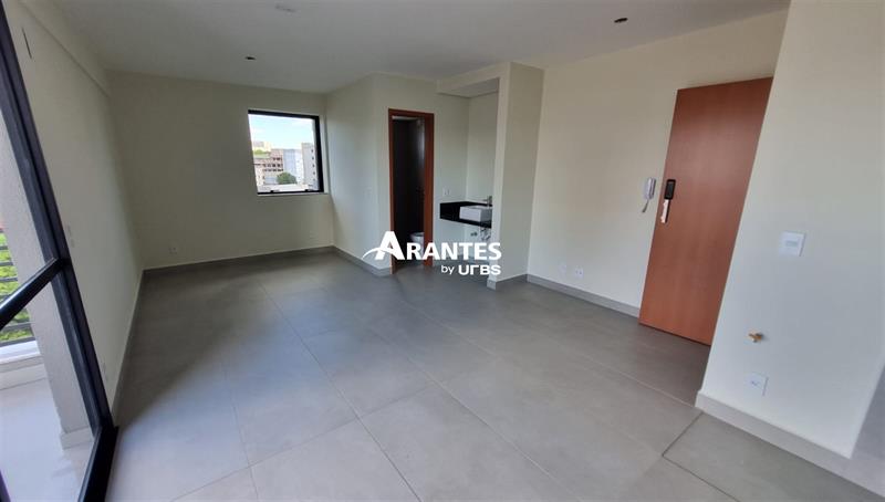 Com 33,25m² de área privativa, este studio oferece um quarto, sala integrada à cozinha e sacada, ideal para quem busca um espaço prático