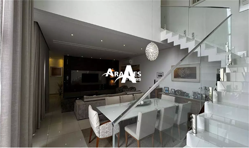No primeiro pavimento, você encontra uma ampla sala integrada, cozinha planejada e uma suíte com jardim de inverno