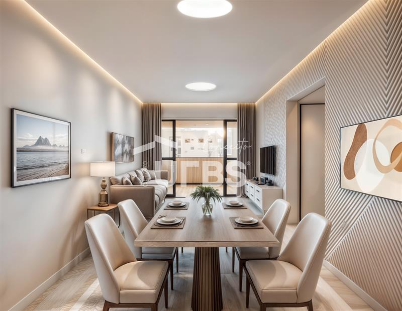 A cozinha americana integrada à sala de 2 ambientes oferece um espaço amplo e acolhedor, ideal para receber amigos e familiares com conforto e estilo.