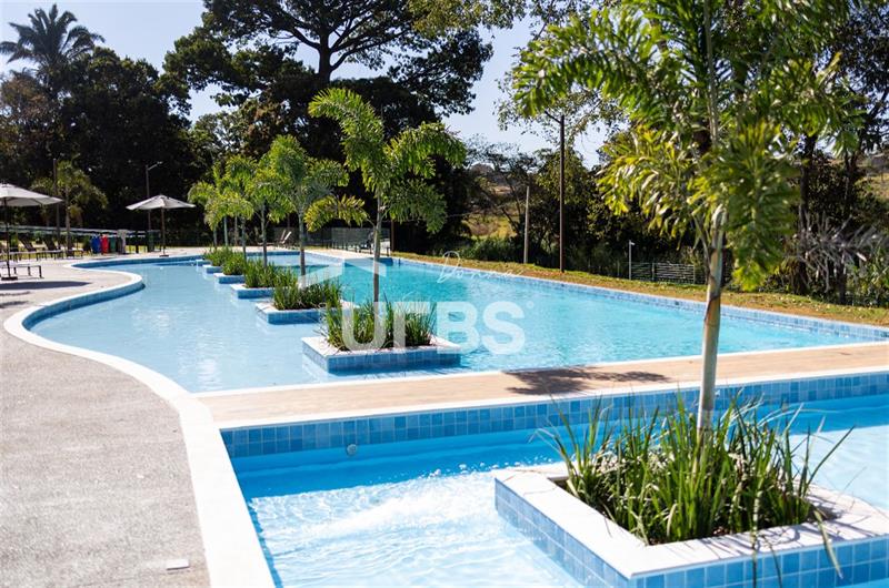 Condomínio com infraestrutura completa, piscinas, quadra de areia e área verde integrada à natureza.