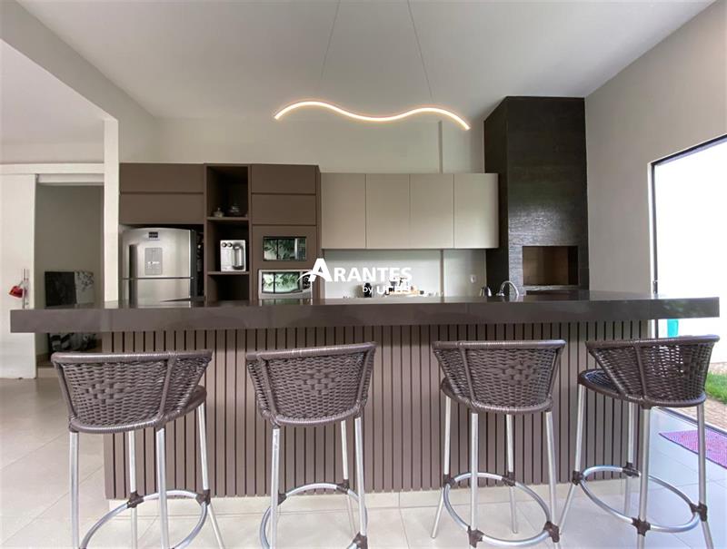 • Sala, cozinha e área gourmet integradas com churrasqueira e ilha
