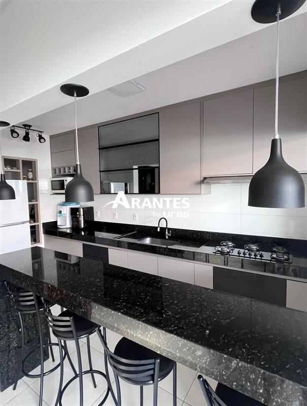 A cozinha conta com ampla bancada e armários planejados, ideal para quem valoriza praticidade no preparo das refeições