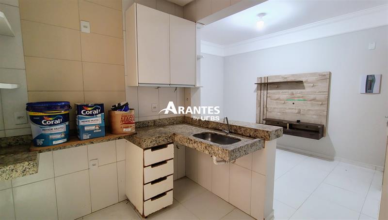 A sala é aconchegante, já equipada com painel de TV e a cozinha conta com armários planejados, proporcionando praticidade e organização, enquanto a área de serviço é separada, mantendo o ambiente sempre organizado.