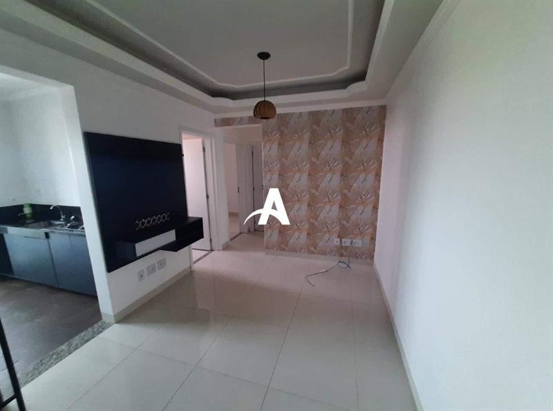 A sala em dois ambientes dispõe de painel e rack, enquanto a cozinha em estilo americano, já equipada com armários, facilita o seu dia a dia.