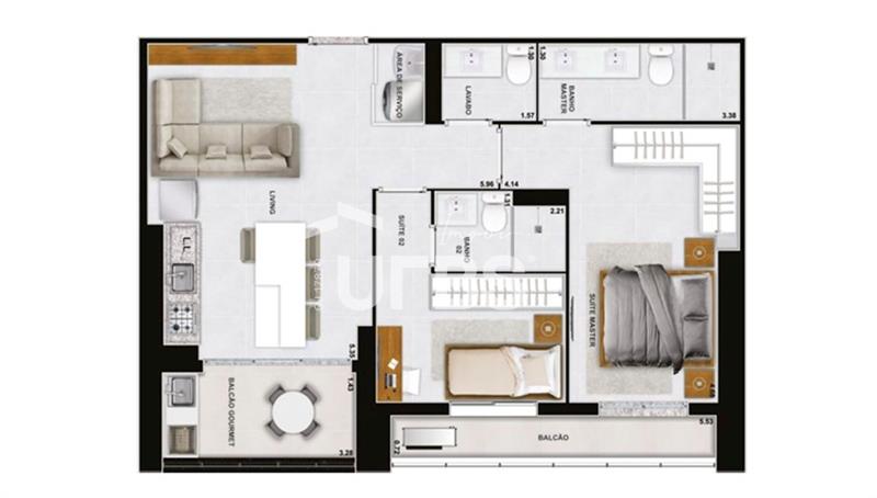 Apartamento com 79,83m² de área privativa, 2 suítes plenas, sala para 2 ambientes, varanda, lavabo, cozinha e área de serviço