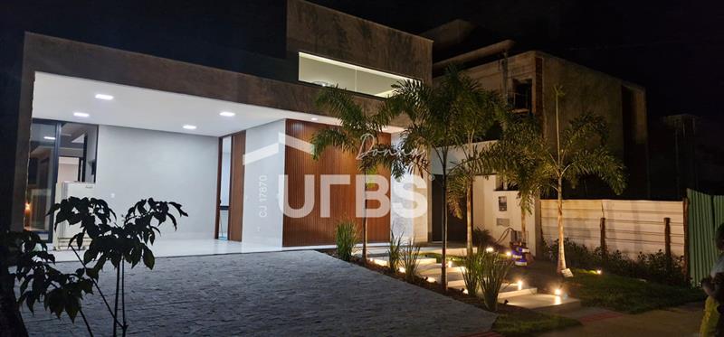 Casa térrea de alto padrão no Condomínio Parqueville Jacarandá, em Aparecida de Goiânia, projetada com excelente integração dos ambientes e acabamentos de qualidade.