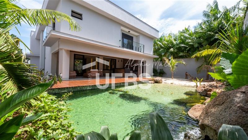 A casa possui excelente acabamento, com piso, bancadas e pedras de altíssimo padrão; completa em armários planejados; aquecimento solar para água e piscina; projeto de iluminação em led; climatização em toda casa com ar-condicionado splits; automação das persianas das salas e quartos; vendida toda mobiliada e equipada; e paisagismo com irrigação automatizada