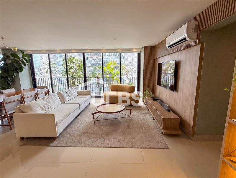 Este apartamento, final 2, está situado em andar alto e conta com projeto assinado por Leo Romano.