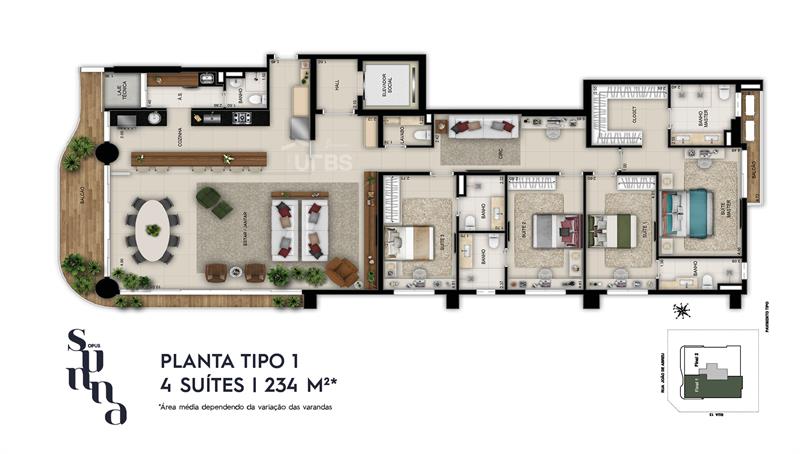 ApartamentoApartamentos de 232,93 m² no melhor ponto do Setor Oeste, em frente à Praça do Sol.