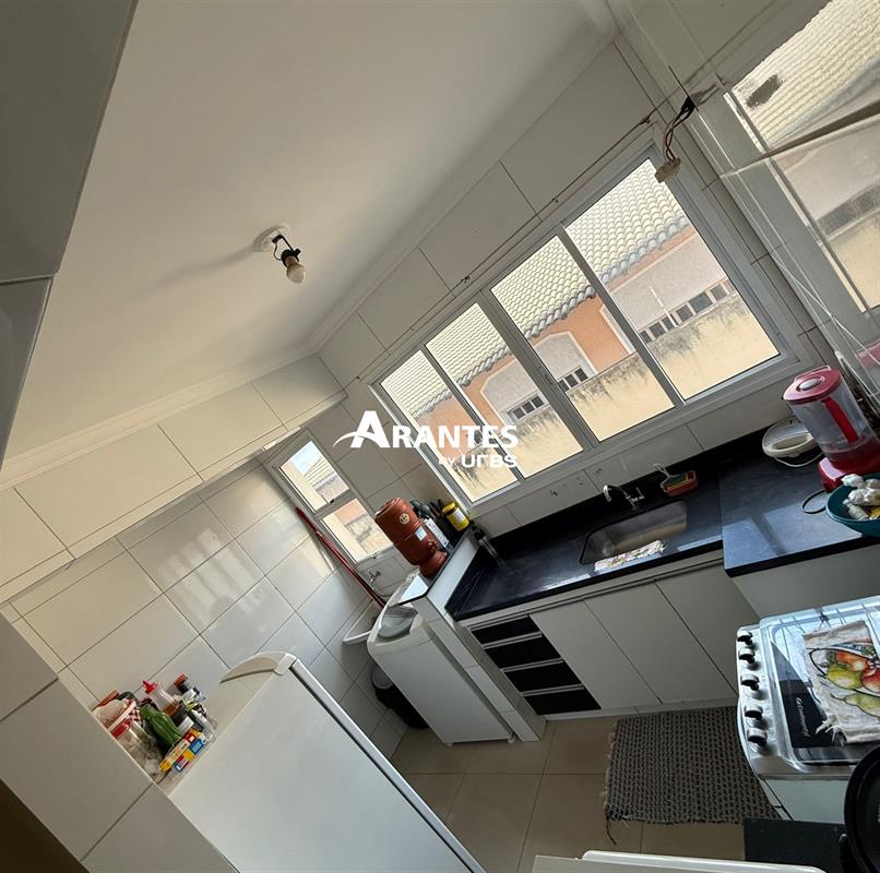 A cozinha americana, integrada à área de serviço e equipada com armários, facilita a rotina e torna o ambiente mais prático e funcional
