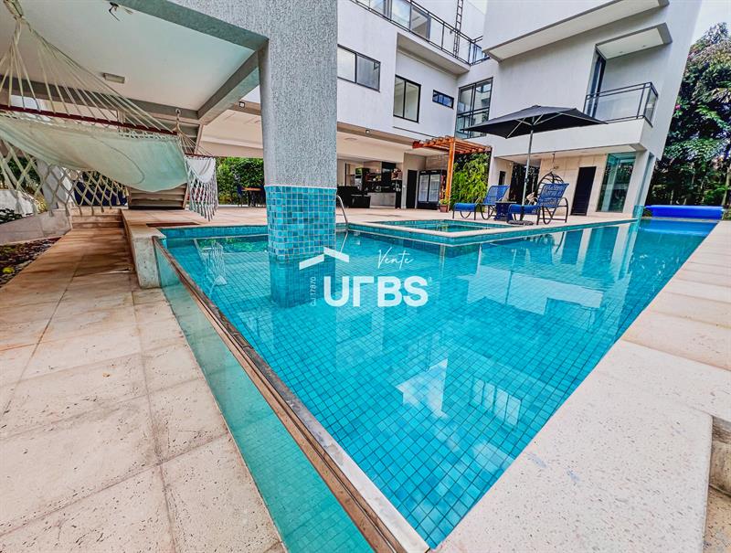 Conta com sala ampla para dois ambientes, cozinha com armários, área gourmet completa, piscina com sauna molhada, lavabo gourmet, área de serviço, banheiro de funcionária, despensa e escritório