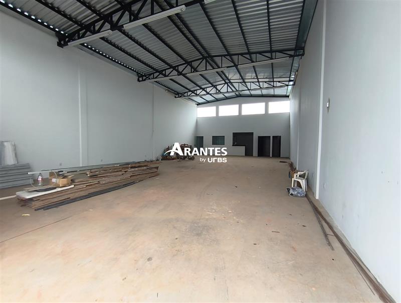 O ambiente principal do galpão é amplo, permitindo fácil adaptação para estoque, produção, logística ou atendimento, com circulação fluída e aproveitamento do espaço