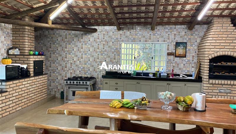 O imóvel conta ainda com 02 cozinhas, sendo uma cozinha externa com aproximadamente 60 m², integrada à área gourmet, perfeita para confraternizações, equipada com churrasqueira e fogão a lenha, além de banheiro externo, trazendo praticidade ao receber convidados.