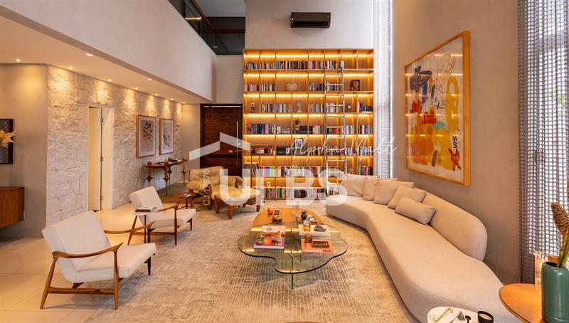 No pavimento térreo, temos sala com pé direito alto e persianas automatizadas, trazendo modernidade e sofisticação para a casa